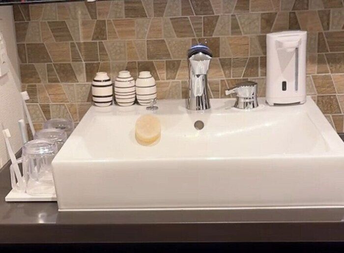 市販の洗剤や洗顔料など、カラフルなパッケージが並ぶと一気に生活感が…。