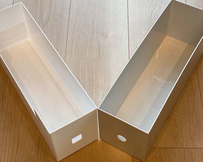 中身が見えないようフタつきにすれば、さらにスッキリ見せられますよ。