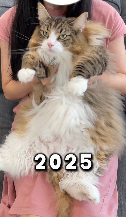 「北欧猫の0歳→3歳の成長を同じポーズで比較してみた」というコメントとともに投稿された動画がこちら。