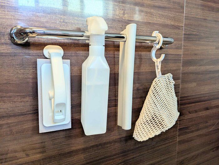 わが家では、バスルームで掃除用スポンジや洗顔ネットの収納に使用中。ふつうのS字フックからこれに替えてからは、多少雑に扱っても落ちることがなくなり、出し戻しがノーストレスに。