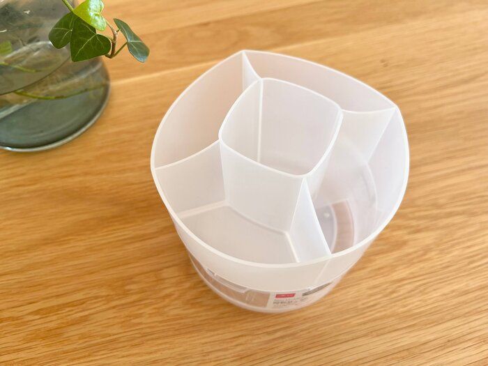 ペンホルダーではありますが、使い勝手がいいので文房具だけでなくいろんな物の収納に役立ちます。例えば散らばりがちなメイクグッズの収納や、あとはスティックタイプのドリンクの収納などにも使えて便利です。