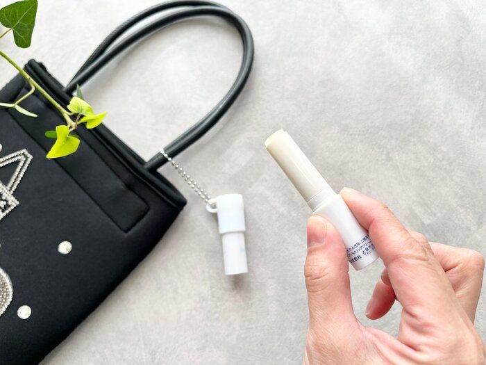 それにリップクリームの定位置が決まることで、ポケットやバッグの中を探すという無駄な時間がいらなくなります。バッグの持ち手にボールチェーンを取り付けて、リップクリームが隠れるようにバッグの中に入れてしまえば、さりげなくリップクリームを持ち運ぶこともできます。