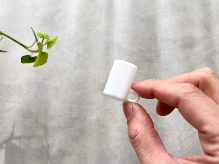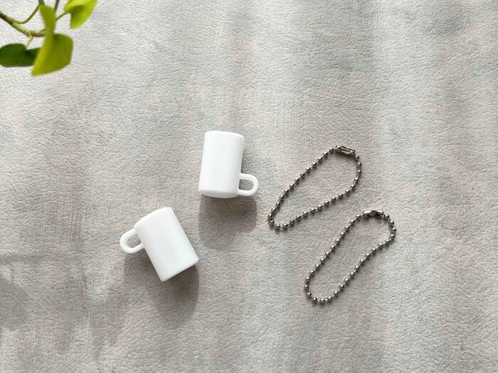 商品のサイズは、約直径1.7cm×横2.5cm×高さ2.7cm。小さなマグカップにも見えますが、実はこちらの商品は、リップクリームをキーホルダーにして持ち運べるようにできるという優れもの。