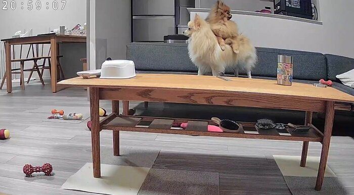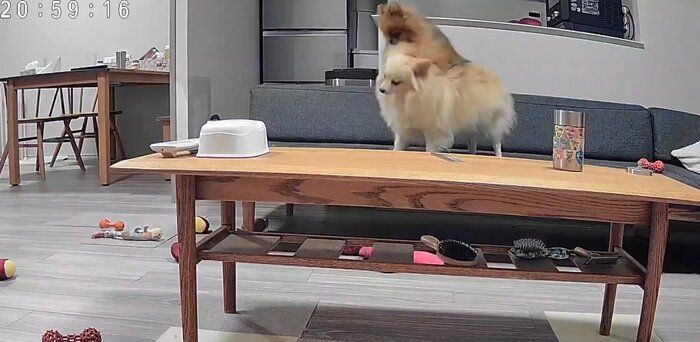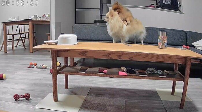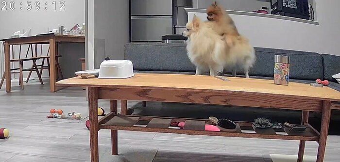 投稿したのは、愛犬ミルモくんとポンくんがお留守番していたときのペットカメラの映像。