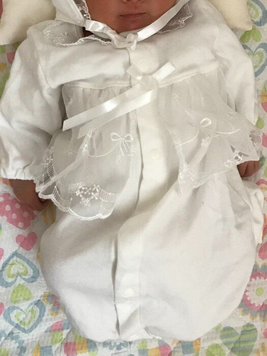 成長した娘さんが、新生児期に着たベビードレスをもう一度着用