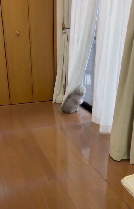 「いつもは外から、ココちゃんが窓際に座って待つ姿を見るのですけど、今回は部屋の中からちょこんと座った後ろ姿を見てなんか切なく感じてしまいました」