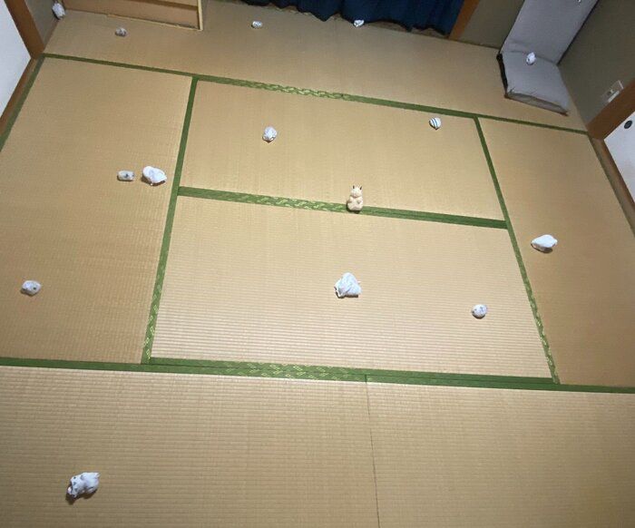 べーーやんさん(@hamuhamustar924)が投稿したのは、以前ハムスターを飼っていた頃のエピソードです。ハムスターを飼育していた和室では「本物のハムスターを探せ!」を定期開催していたそう。難しいクイズに、多くの挑戦者が集まりました。