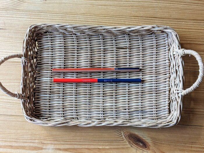 今は昔と違って、赤が7割、青が3割の赤青鉛筆も販売されています。筆者の子どもの頃は、青ばかりが余る印象だったため、長女の時に「これは画期的な商品だ」と思ってまとめ買いしましたが、これが見事に失敗!長女の先生は赤も青も満遍なく使う方だったのです。