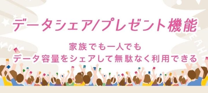 データシェアも見逃せません。生活ルーティーンの変化に伴い、使うギガ数は毎月変化します。余ったギガを無料で繰り越したり、家族でシェアできるサービスは、ギガを無駄にすることなく使えて、ただでさえ月額料金は節約できているのにさらにお得になるのは嬉しいですよね。