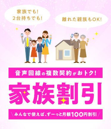 1回線につき月額100円引きの家族割引